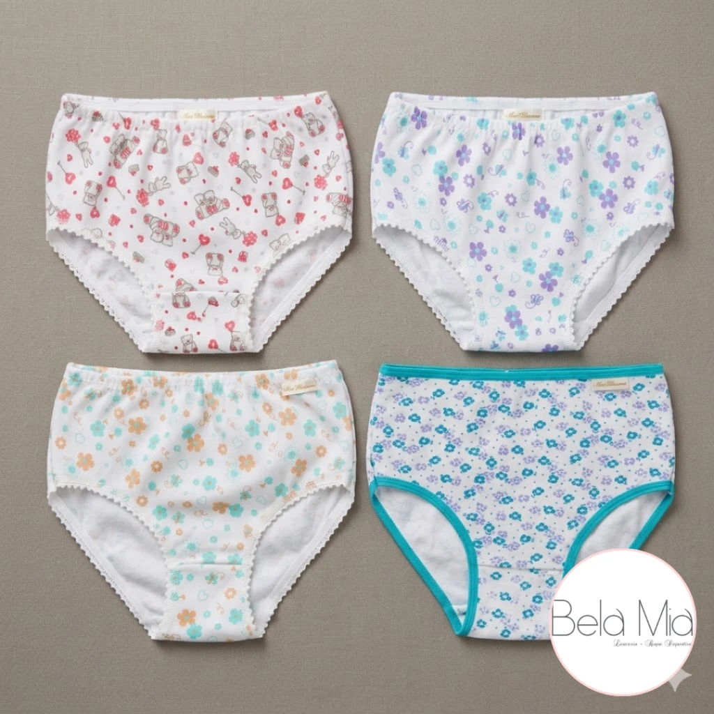Bombachas para niña confeccionadas en algodón, suaves y cómodas, ideales para el uso diario.