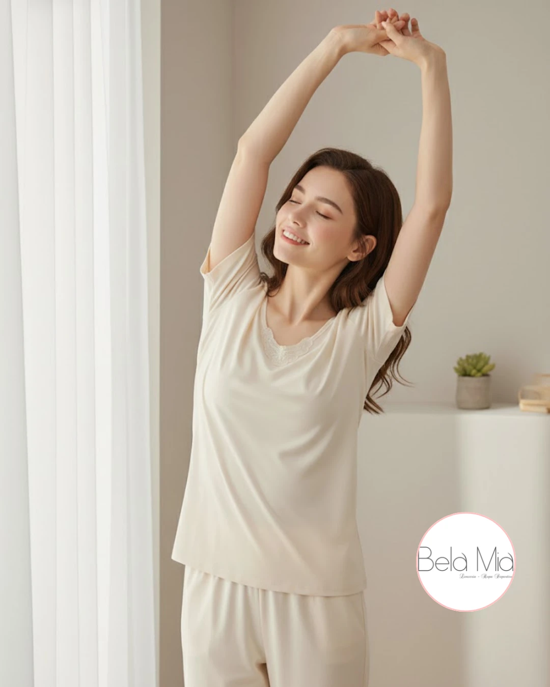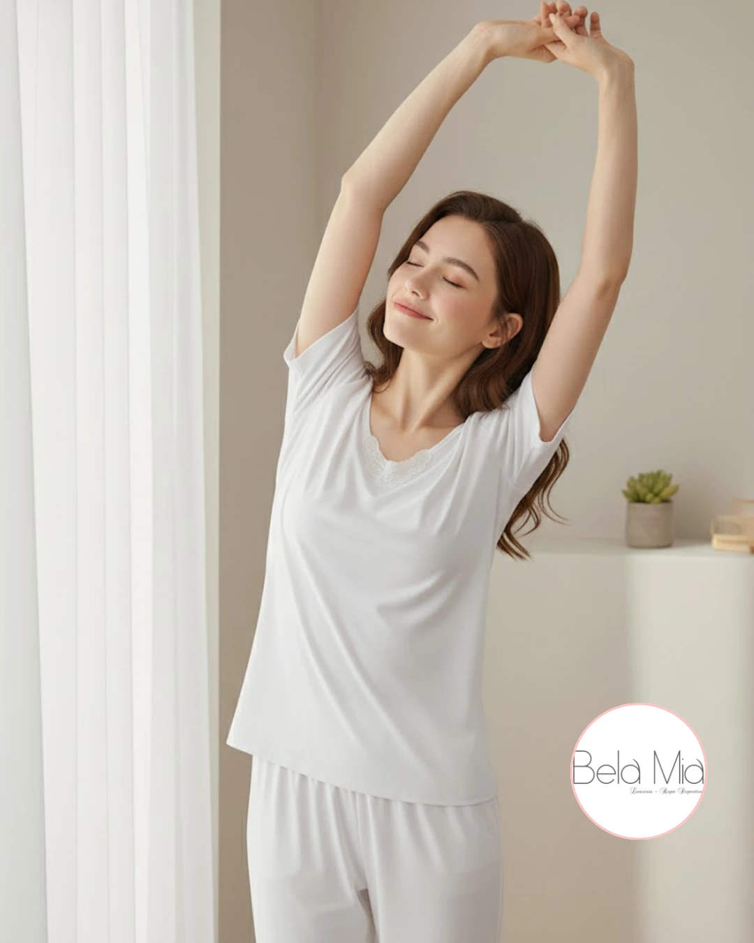Camiseta de algodón con aplique, cómoda y delicada, ideal para el uso diario.