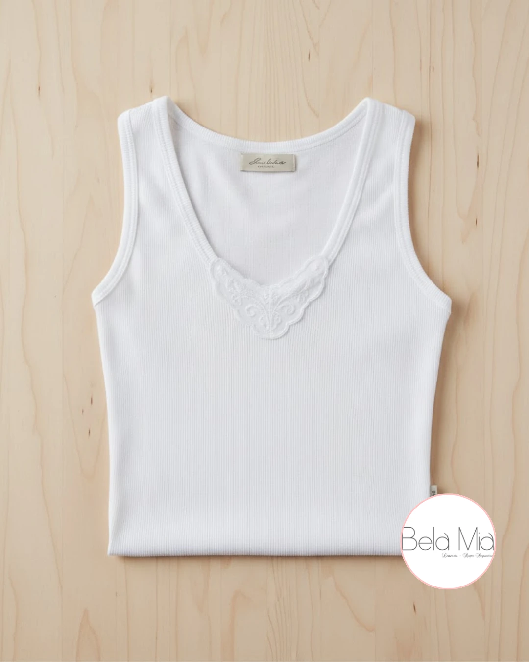 Camiseta sin manga marca Mariana K., cómoda y versátil, ideal para usar sola o como prenda interior.