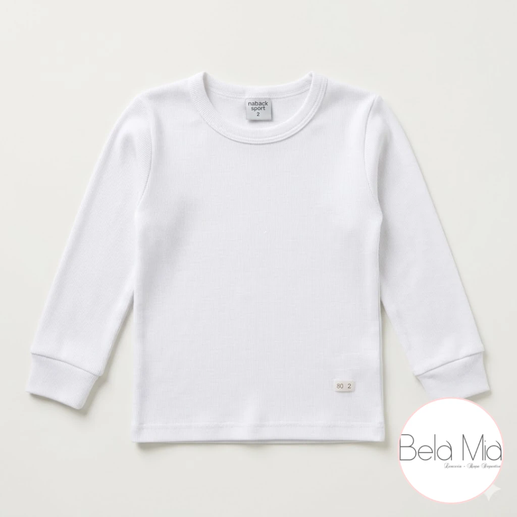 Camiseta térmica de algodón para niños marca Narocca, modelo unisex. Ideal para mantener el abrigo en los días fríos y usar como primera piel.