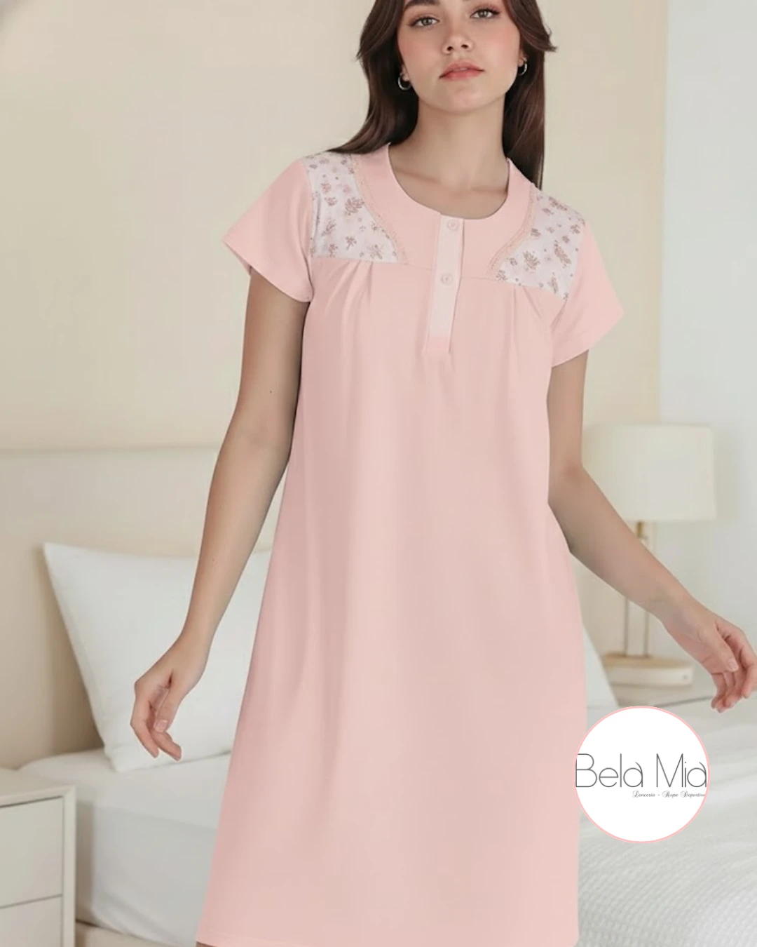 Camisón manga corta confeccionado en algodón, con botones al frente. Cómodo, fresco y ideal para descansar con total confort.
