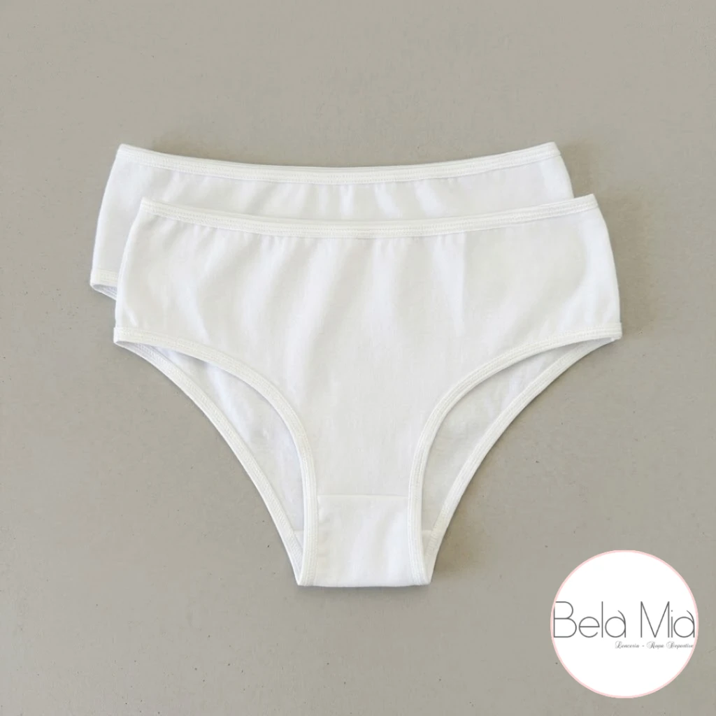 Pack de 2 bombachas para niña en color blanco, talle 10. Confeccionadas con tela suave y cómoda, ideales para el uso diario o para uniforme escolar.