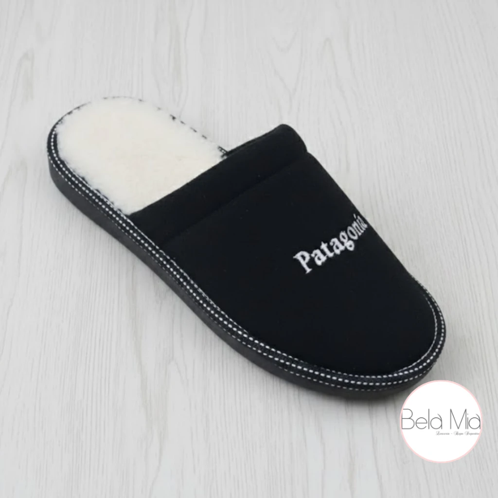 Pantufla Patagonia para hombre, cómoda y abrigada, ideal para el hogar en días frescos.