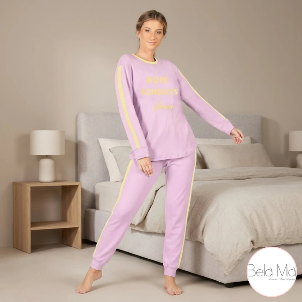 Pijama confeccionado en algodón, suave y cómodo, ideal para descansar con total confort.