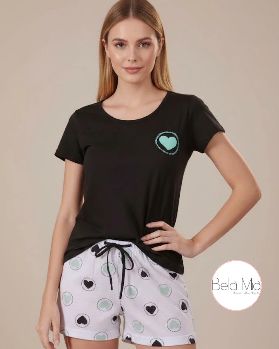 Pijama de remera y short marca Luna, cómodo y fresco, ideal para descansar con estilo.
