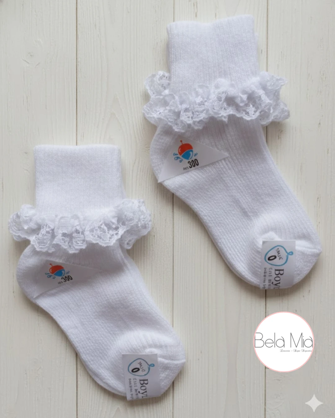 Zoquete con delicado detalle de puntilla, ideal para complementar looks infantiles con un toque clásico y elegante.